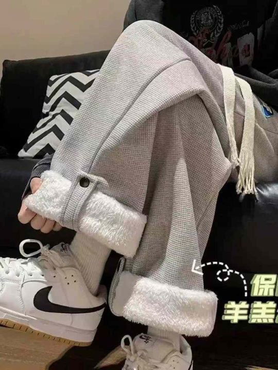 冬季华夫格羊羔绒加厚保暖休闲裤男士潮牌百搭简约韩版坠感直筒翻边阔腿长裤,独立包装,231件,尺码1-5(S-2XL)