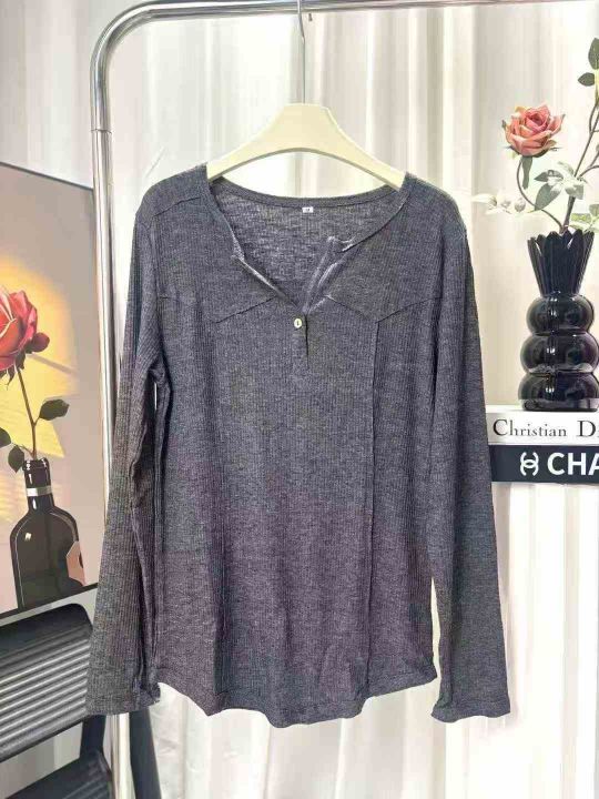 2230件韩系早秋新款宽松V领显瘦内搭打底衫上衣,含棉...