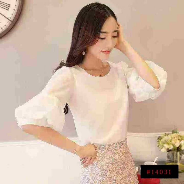 韩版泡泡袖设计感遮肉显瘦衬衣,[爱心]60件左右,白色为主,码数S-2XL,穿70-140斤,[666]工厂原包装瑕疵@_@