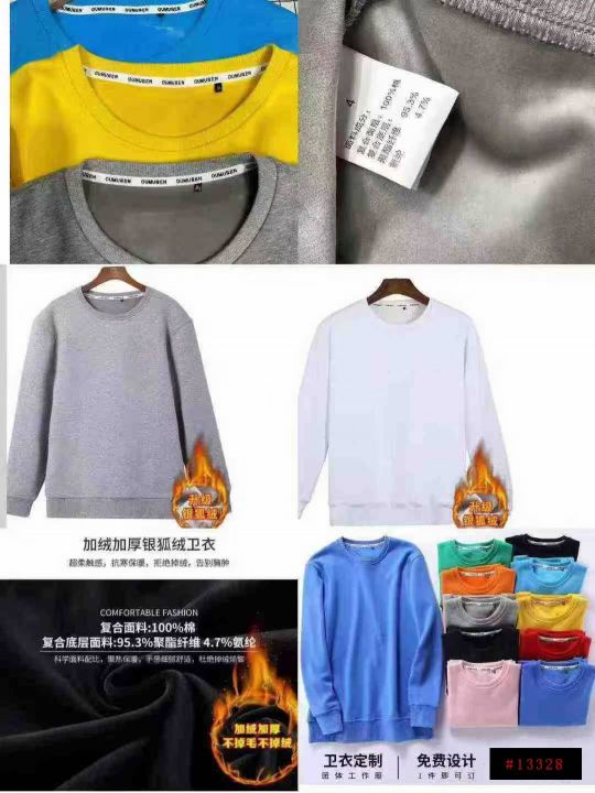 工厂新货8000件加绒男女同款卫衣,纯棉面料银狐绒,码...