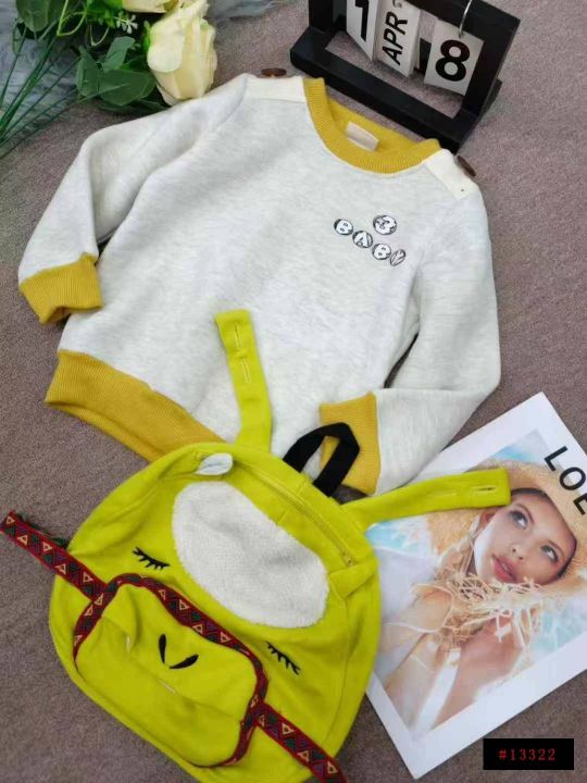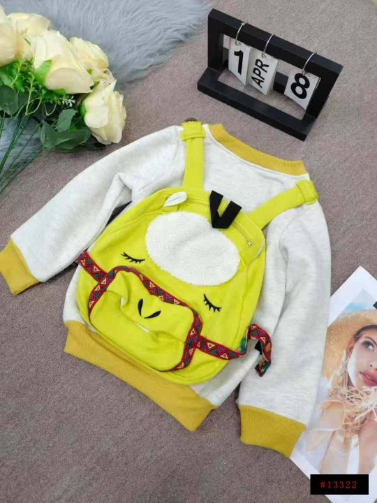 6.8清,127件童装加绒圆领套头卫衣,每件带有背包配饰,码数95-140,独立包装带吊牌。@_@