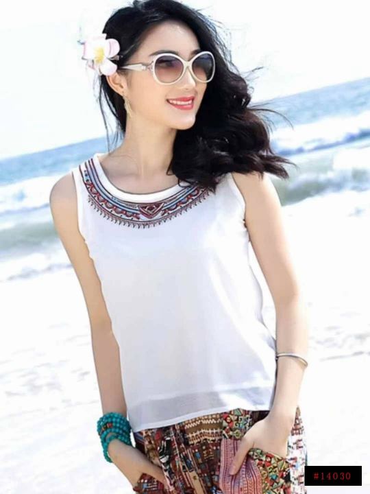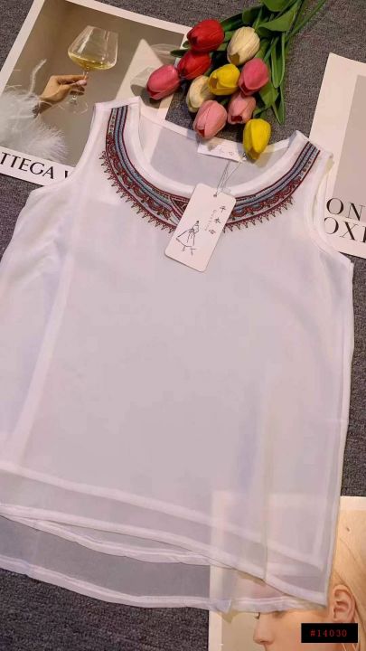 上新全清:5.8一件波西米亚民族风刺绣双层雪纺上衣,[...