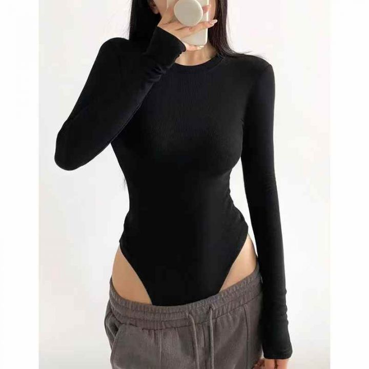 99件,秋冬纯色百搭修身连体衣女圆领长袖打底衫纯色内搭连身上衣,码数S-XL...