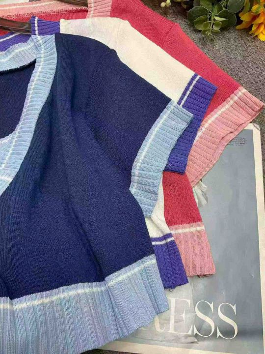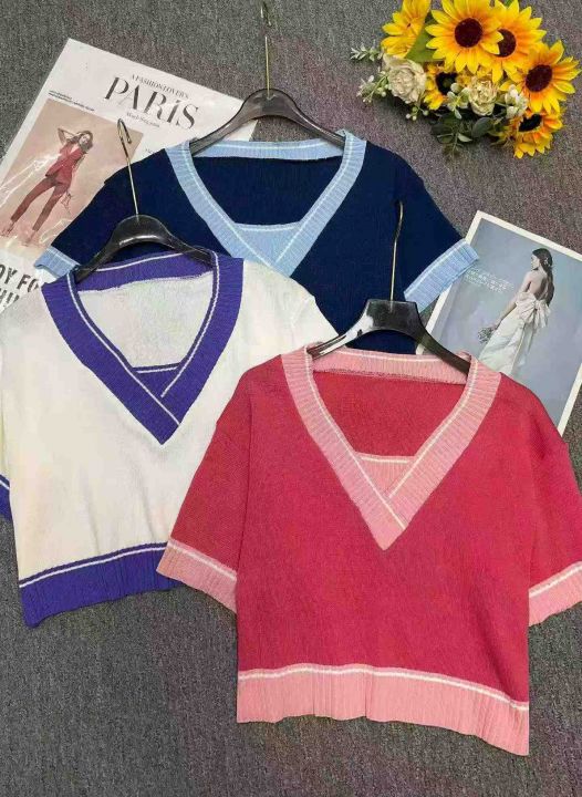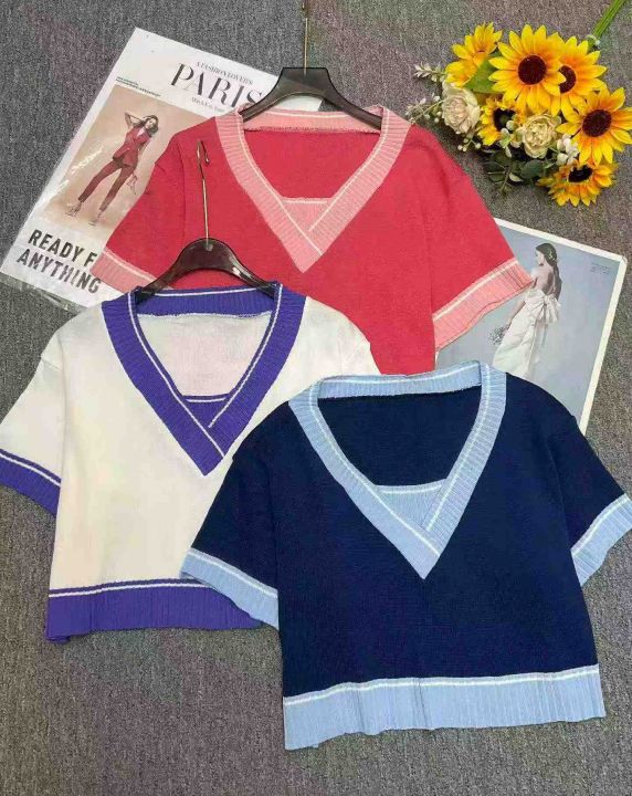 夏季新款港味风假两件V领短款宽松针织短袖T桖,独立包装,均码面料柔软舒适,530件,全清6.9元超低价秒杀!分货加一!