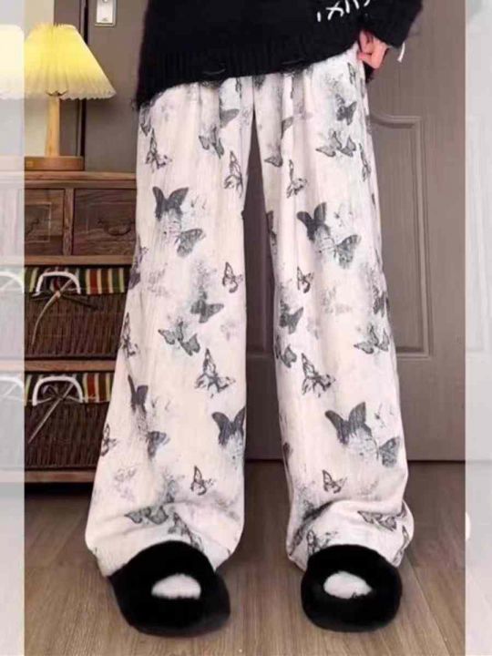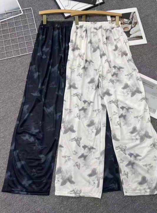 ☕️水墨蝴蝶国风阔腿裤女夏季休闲新中式扎染冰丝裤36...
