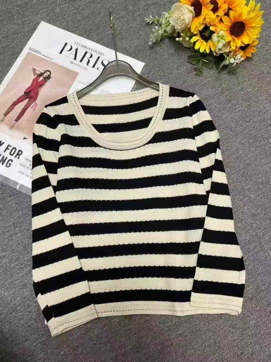 春秋款新品撞色条纹宽松正肩长袖针织衫,独立包装,均码面料柔软舒适,520...