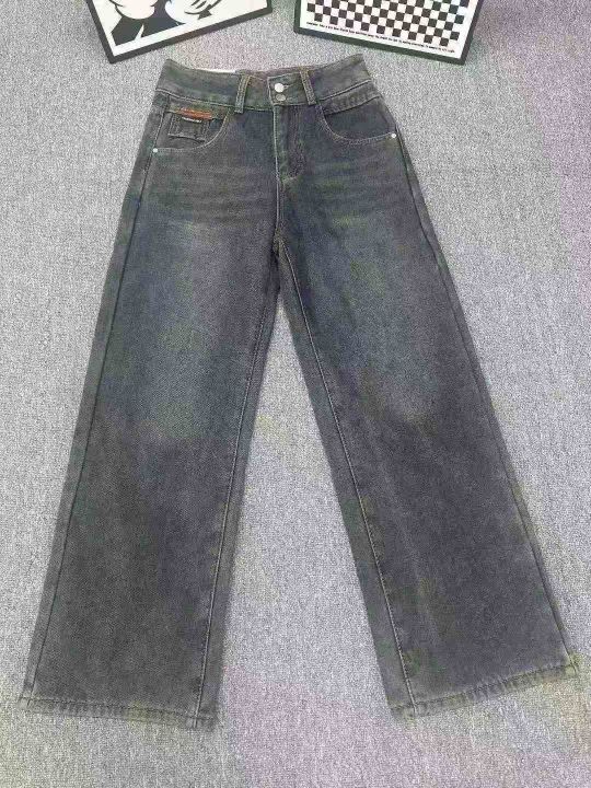 高品质高腰牛仔阔腿裤女直筒裤垂感百搭拖地裤,加绒款,单款单色,独立包装带腰牌,码数xs-2xl,数量442件,全清21.9元秒杀!分货➕1!