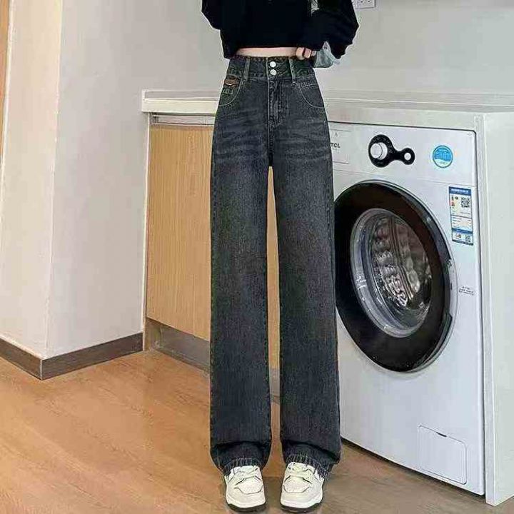 高品质高腰牛仔阔腿裤女直筒裤垂感百搭拖地裤,加绒款...