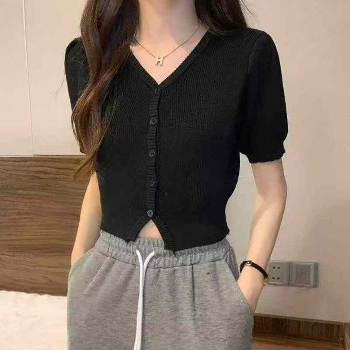 夏季新款法式V领短款收腰显瘦泡泡袖独特小众设计感针织短袖开衫,独立包装,均码面料柔软舒适有弹力,1123件,全清5.9元超低价秒杀!分货加一!