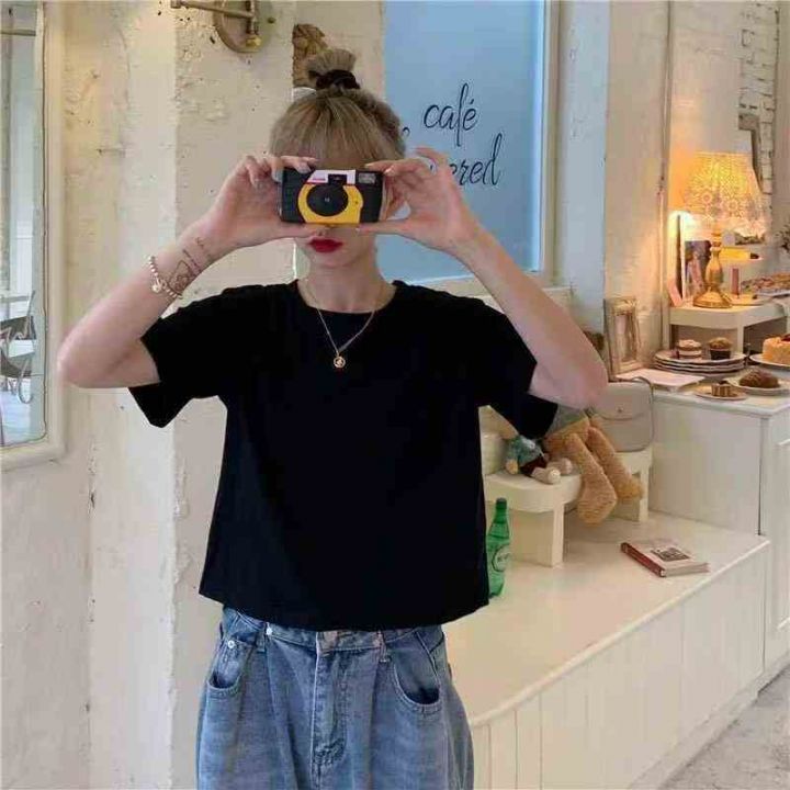 662件,纯色短袖t恤女宽松韩版圆领半袖学生显瘦短款露...