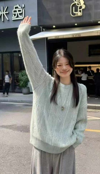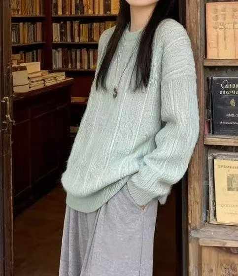 秋冬新款设计感彩线软糯宽松慵懒风加厚甜美显瘦减龄圆领套头毛衣,独立包装...