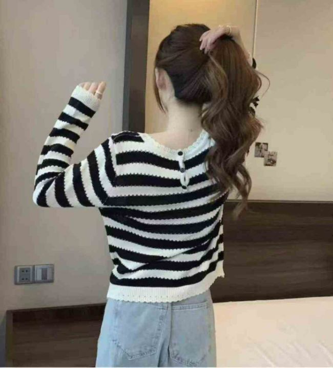 春秋新款撞色条纹时尚百搭宽松韩版针织毛衣套头毛衣,独立包装,均码面料柔...