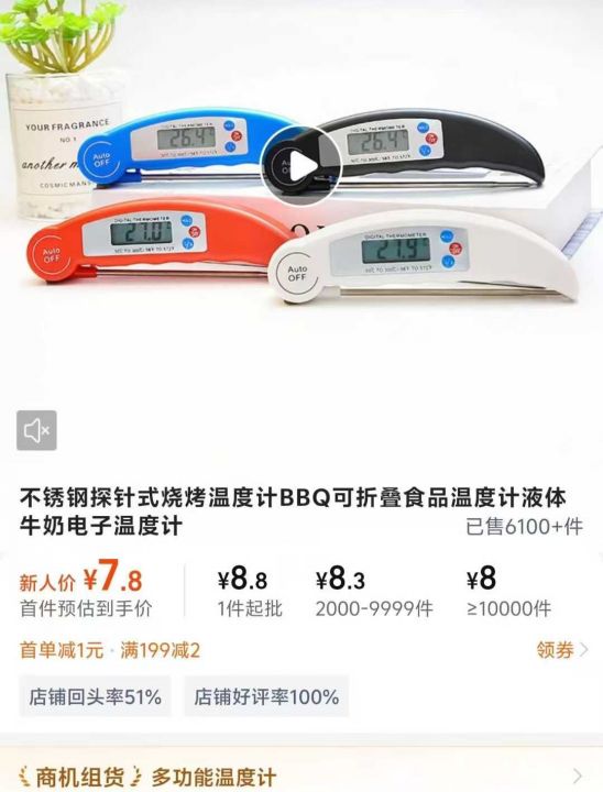 1000盒数显折叠式厨房食品温度计,全清每盒3.3元秒!