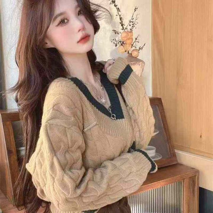 秋冬新款爆款慵懒风加厚麻花宽松短款设计感v领针织套头毛衣,独立包装,均码面料软糯舒适,210件,全清5.9元超低价秒杀!分货加一!