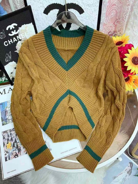 秋冬新款爆款慵懒风加厚麻花宽松短款设计感v领针织套头毛衣,独立包装,均码面料软糯舒适,210件,全清5.9元超低价秒杀!分货加一!