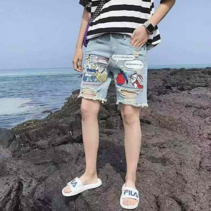 夏季新款时尚个性卡通印花男士牛仔短裤,独立包装,码...