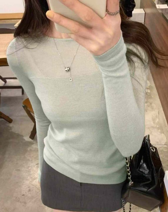 春秋新款纯欲风软糯设计款净版弹力修身显瘦羊毛衫,独...