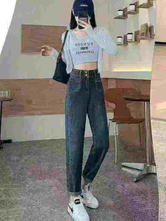网店下架新款高品质洗水高腰宽松显瘦牛仔老爹哈伦裤,独立包装带吊牌,码数...