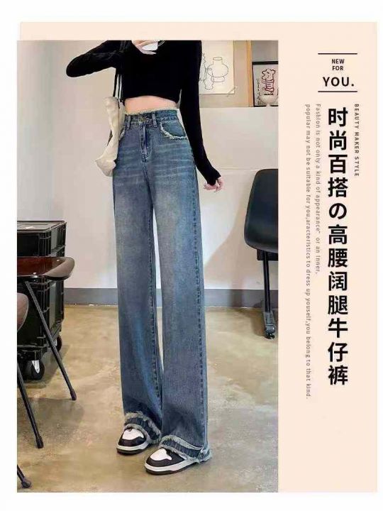 ☕️毛边直筒阔腿牛仔裤女秋冬季新款高腰毛边宽松阔腿裤子 531条全清13.8元...