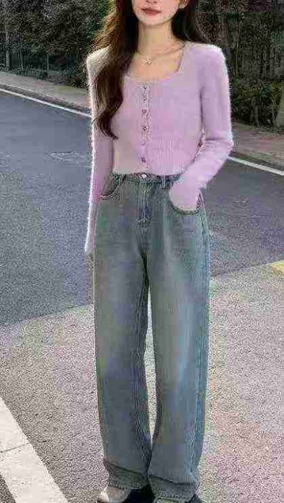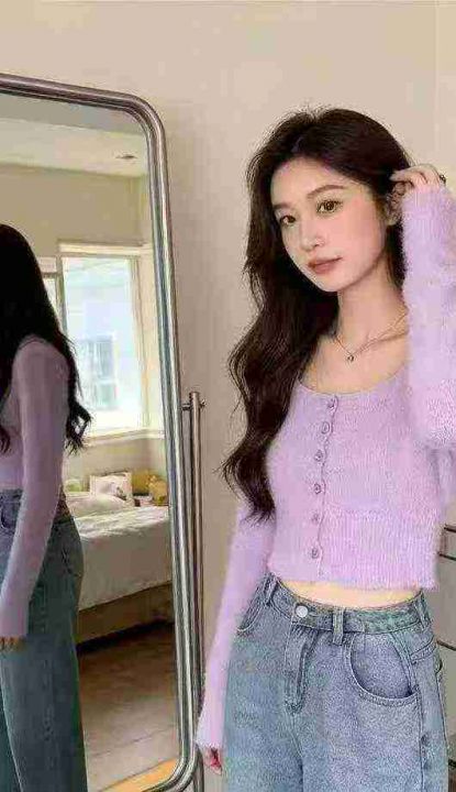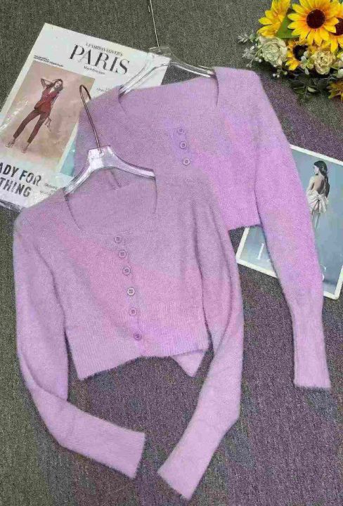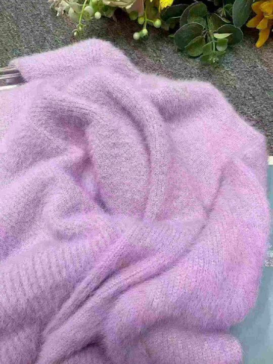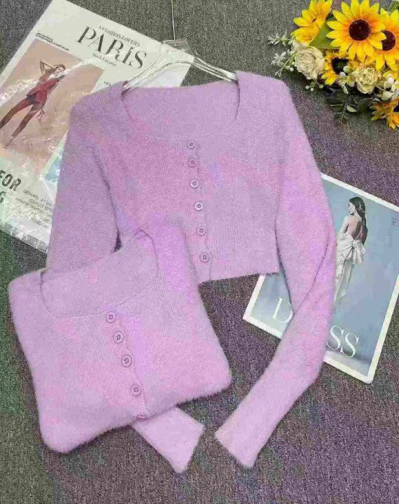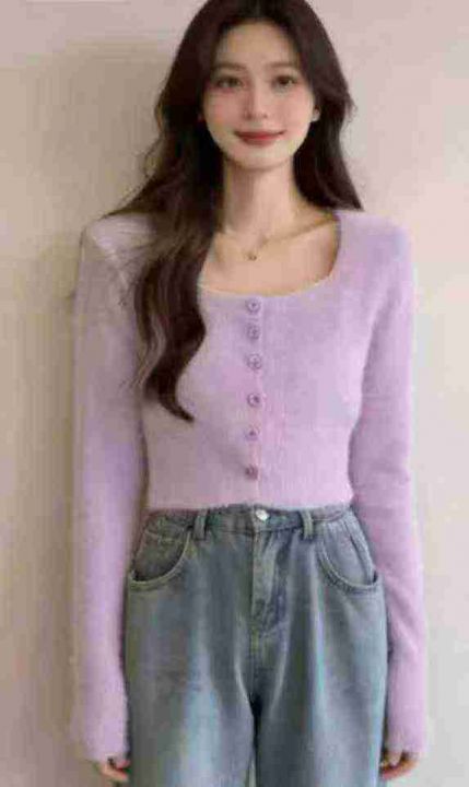 春秋新款法式复古紫色方领高级感弹力修身显瘦水貂毛针织毛衣开衫,独立包装,均码面料软糯舒适,100件,全清7.9元超低价秒杀!