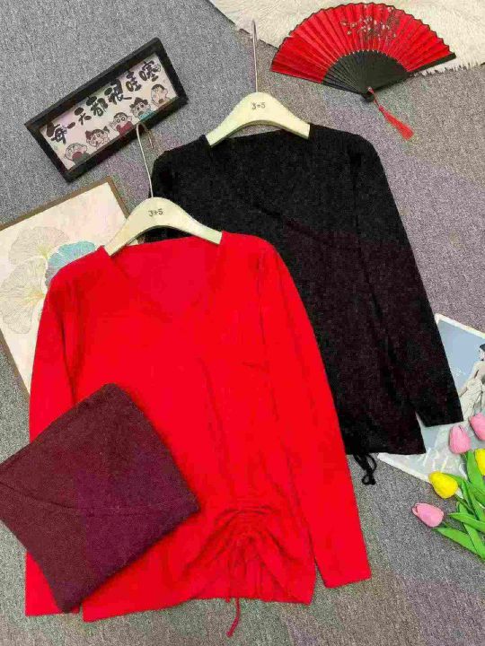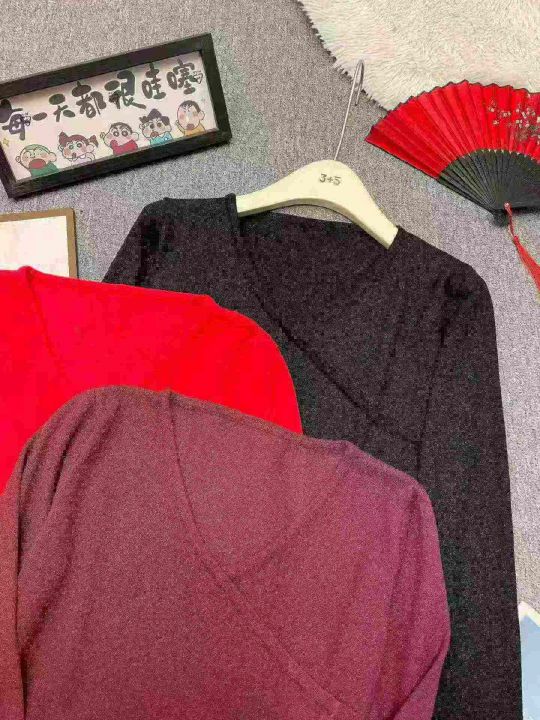 捡漏款,秋季新款弹力修身显瘦V领褶皱套头毛衣,独立包装,单款多色,均码...