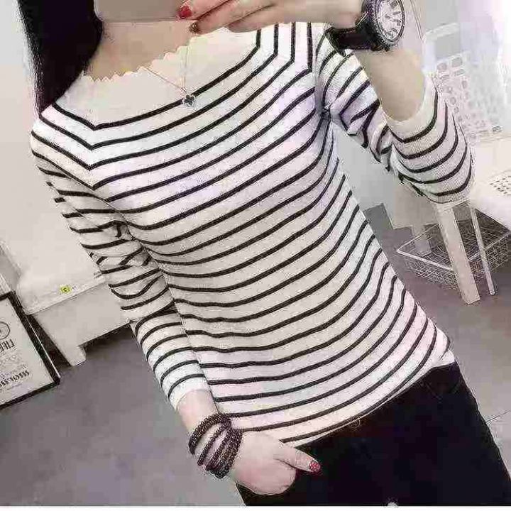 133件包芯纱女装秋冬新款针织打底衫,单款两色,套头条纹百搭上衣,面料柔软,质量好 独立包装模特仅供参考实拍为主。 货号:24862