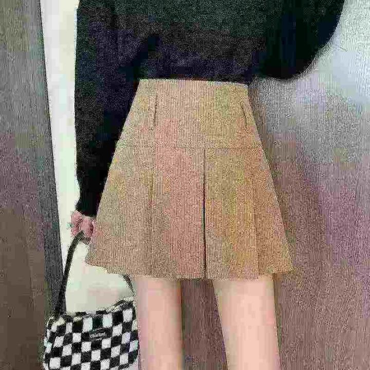 设计感小众a字高腰显瘦短裙复古灯芯绒半身裙秋冬新款百褶裙女装,短裙有内衬,独立包装,两个款,图片色,1-4码,270件左右,5.9元清秒杀