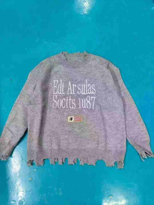 207件男女同款美式复古学院风,字母图案提花刺绣毛衣,破洞情侣ins针织衫 ,货品干净独立包装
