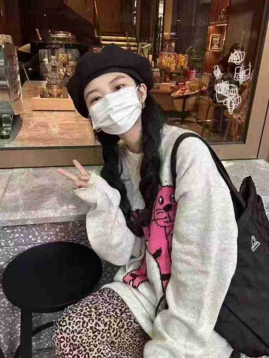 100件秋冬款韩版卡通小猫咪提花,慵懒学院风套头宽松设计针织毛衣,新款百搭,独立包装