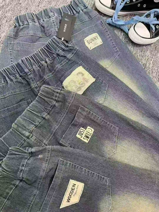 高品质青少年牛仔裤,高弹力洗水软牛仔面料,内里包边,数量2800条左右,码数140-180码,整首齐码,独立包装吊牌,一捆一手码,小标多图案,款式都是一样,网络图供参考大概款式!分货➕1