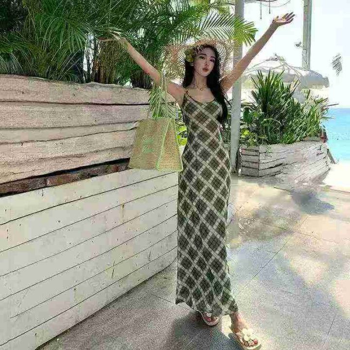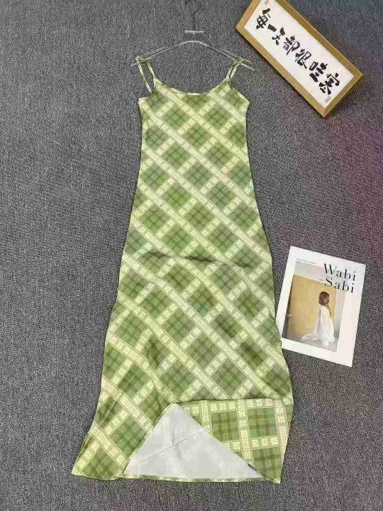 法式复古吊带连衣裙205件8.9,绿色格纹,码数1-4码(S...