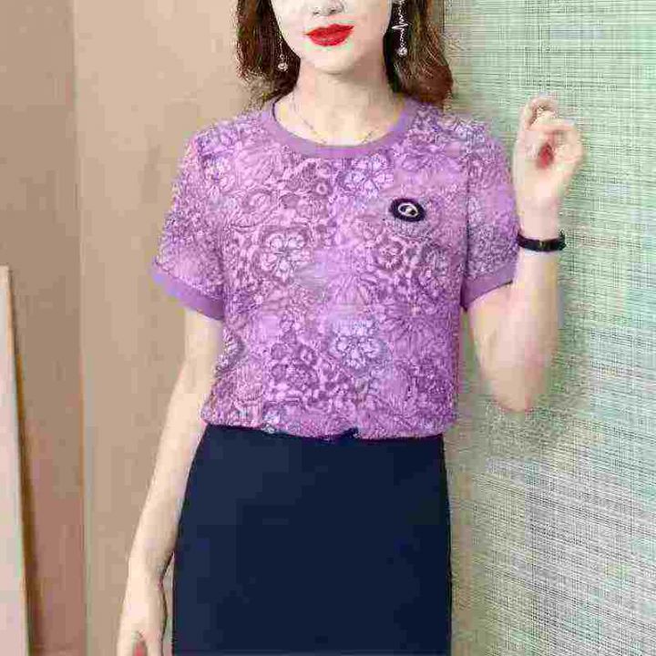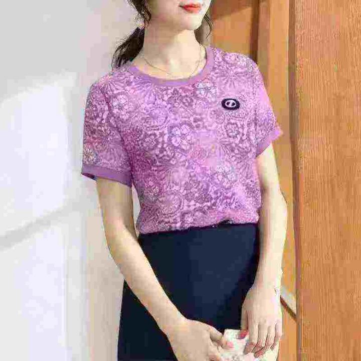 夏季2025新款短袖圆领高档时尚洋气显瘦宽松遮肉上衣,...
