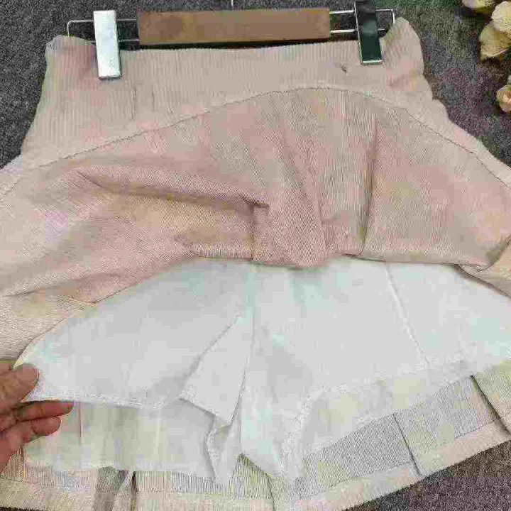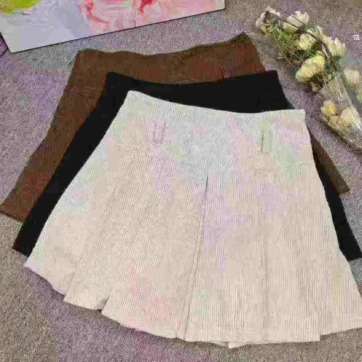 设计感小众a字高腰显瘦短裙复古灯芯绒半身裙秋冬新款百褶裙女装,短裙有内衬,独立包装,两个款,图片色,1-4码,270件左右,5.9元清秒杀