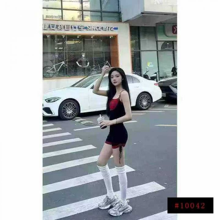 [發]女假两件撞色吊带辣妹连体裤70件独立包装有吊牌 码数3 4设计感高腰连...