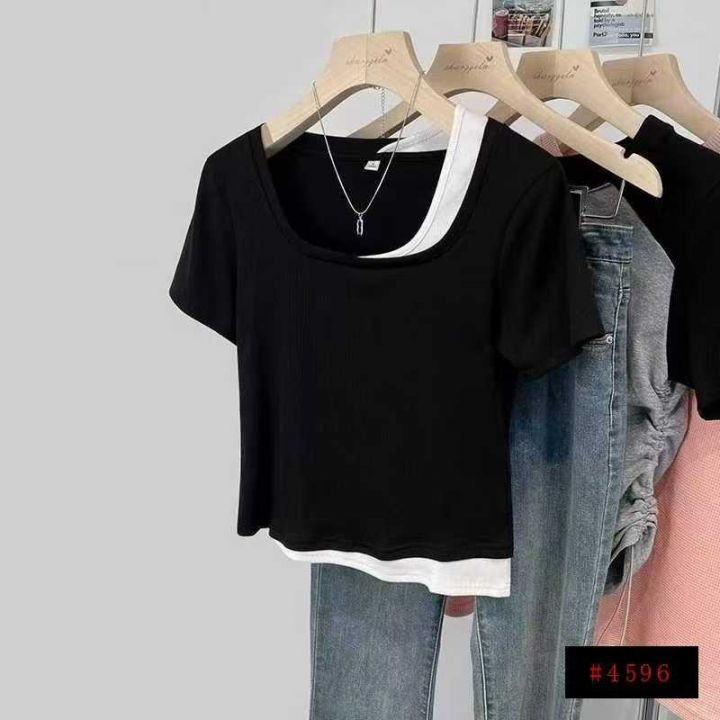 [發]女装假两件正肩辣妹短袖220件独立包装 码数S M 设计感小众上衣ins潮...