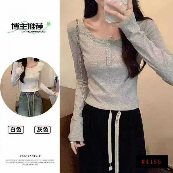 [發]蕾丝纽扣长袖打底332件独立包装 码数1到4 白色多灰色少领口花边设计...