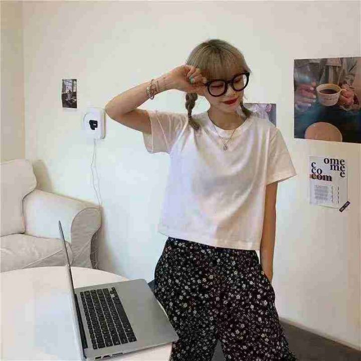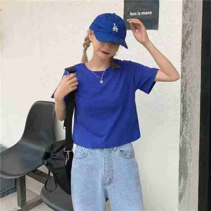 662件,纯色短袖t恤女宽松韩版圆领半袖学生显瘦短款露...