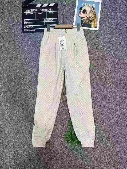 1015条灯芯绒哈伦裤女加绒加厚宽松高腰束脚裤米色休闲...