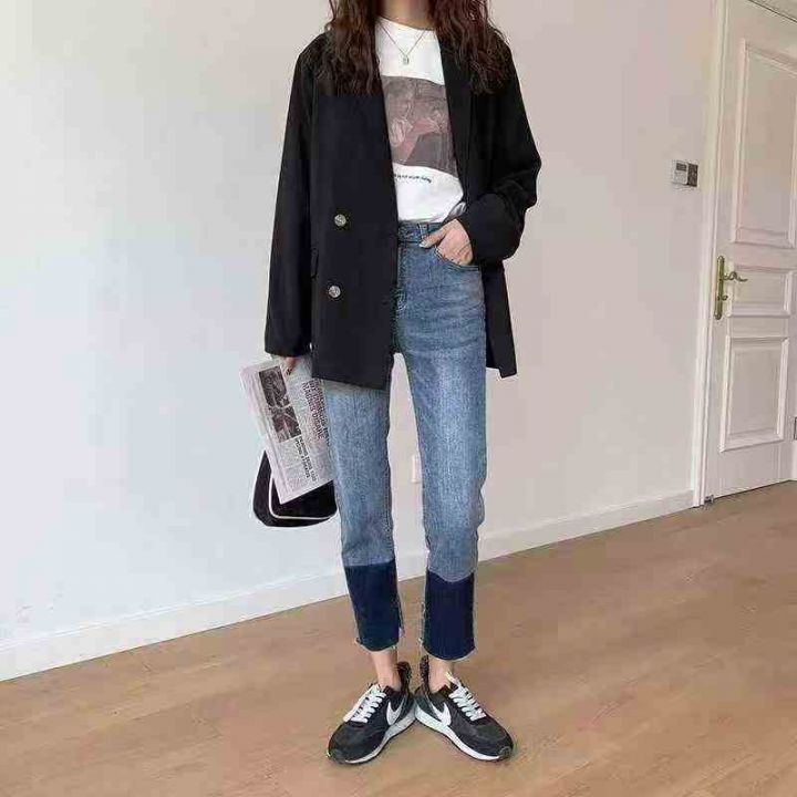 厚重款烟管牛仔裤 修身显瘦百搭高腰弹力裤子,单款单...