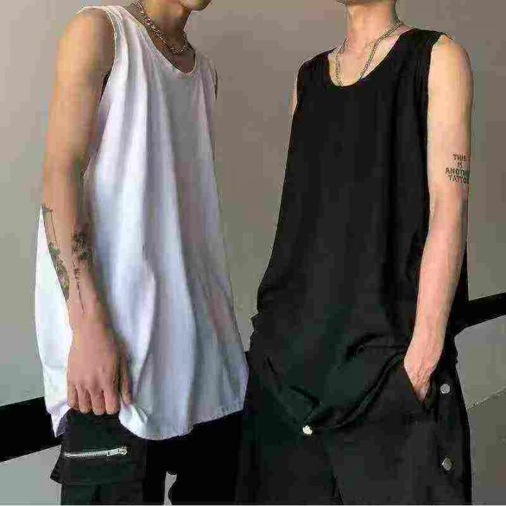 侧开衩无袖背心男生夏季体育生健身运动宽松圆领坎肩,...