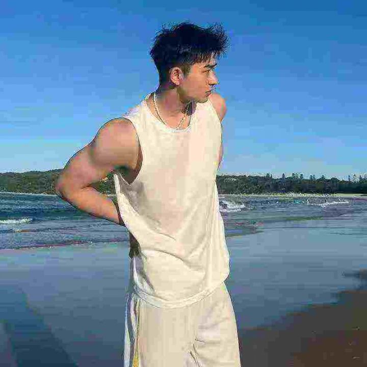 侧开衩无袖背心男生夏季体育生健身运动宽松圆领坎肩,...