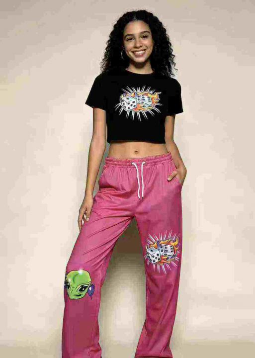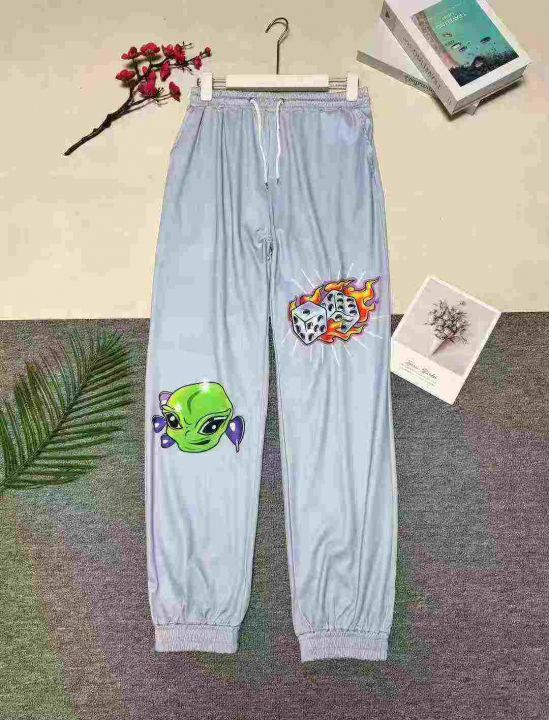 3.9清:欧美时尚印花休闲束脚长裤,整款多色,数量:2...