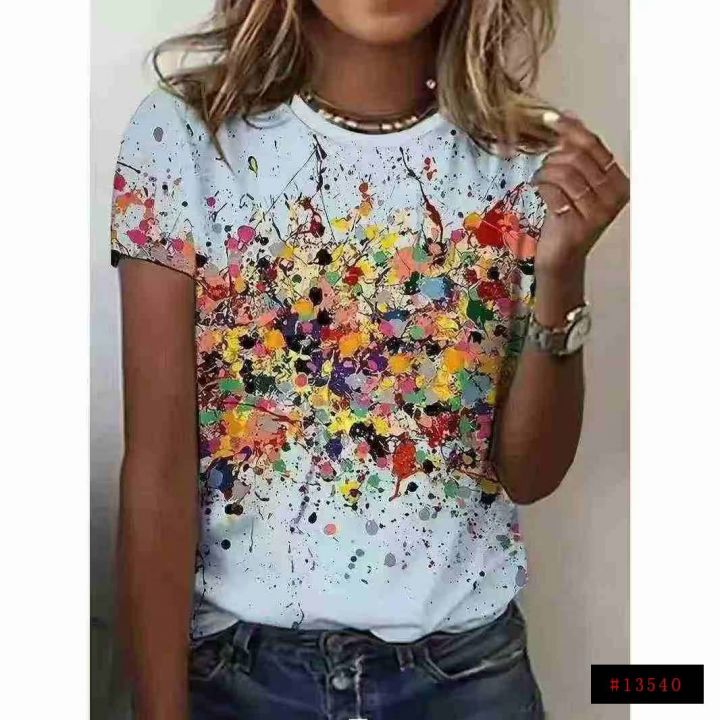 Printed Diagonal Neck Women\'s Short Sleeves印花斜领女式短袖码数:XL-...