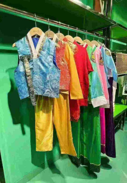 儿童汉服民族服表演服,数量100件左右,码数110-150,基本都是套装,有十来件单件,独立包装