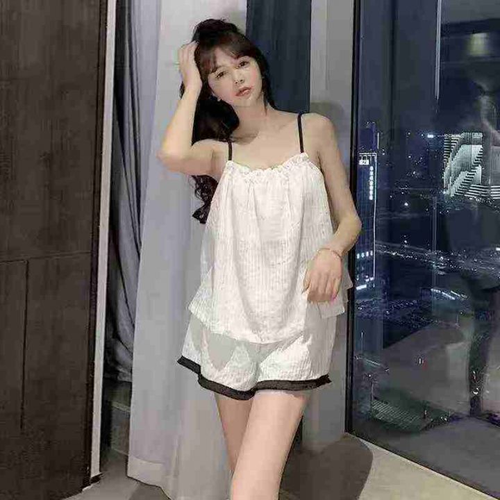 ① 甜美少女日系纯欲可爱性感吊带短裤家居套装!面料...