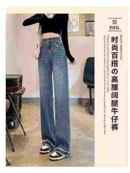 ☕️毛边直筒阔腿牛仔裤女秋冬季新款高腰毛边宽松阔腿...