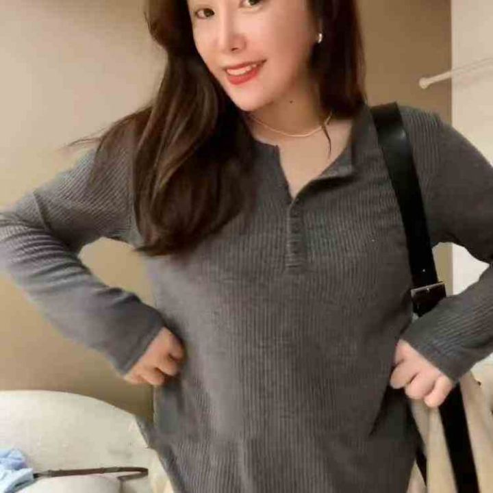2230件韩系早秋新款宽松V领显瘦内搭打底衫上衣,含棉...