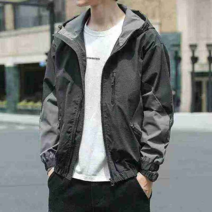 夹克男秋冬宽松时尚撞色外套户外风连帽上衣,独立包装、S -2 X L码,450件...