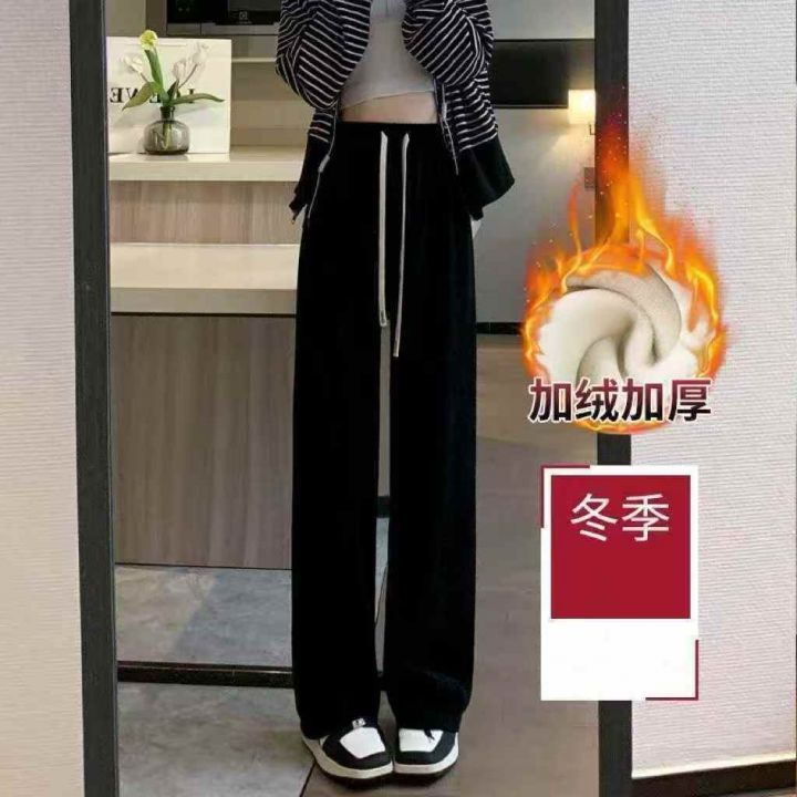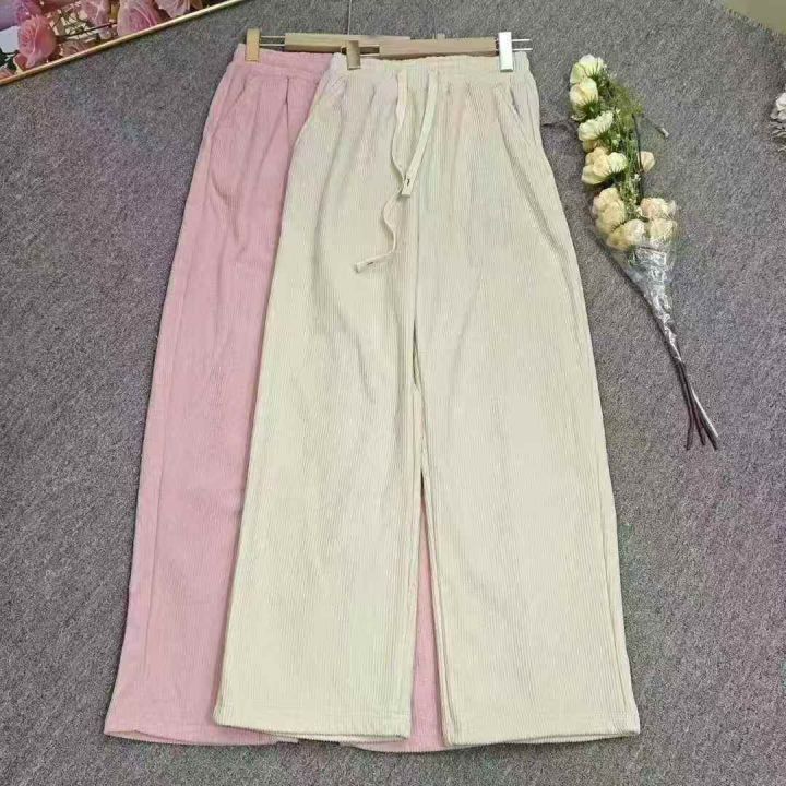 灯芯绒阔腿裤冬季加绒宽松垂感高腰显瘦休闲抽绳直筒女裤,整款三色,独立包装,50件左右,M-3XL,10.8清,