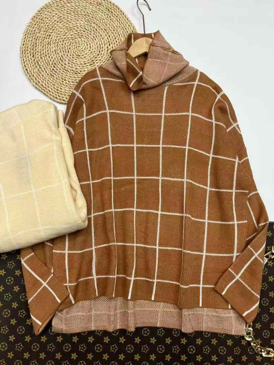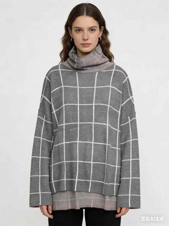 品牌大码女装毛衣,总数量632件左右,码数S-2XL,单款3色,宽松大版型,前短后长设计师款,独立包装吊牌,分货➕1元/件,AI制图仅供参考